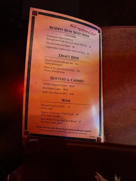 For us, yes. It feels like a 45-minute mini show with good drinks. We left both times saying we’d come back, which is the whole point. If you love Pirates, themed bars, or just want a grown-up breather in Magic Kingdom, put it on your list.